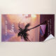 Une belle serviette romantique avec une image de coucher de soleil tropical à la plage. Beau pour n'importe qui ou n'importe quelle occasion et montré ici comme un cadeau ou une faveur mariage pour les invités à une plage ou de destination mariage.