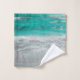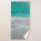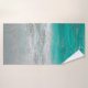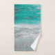 La plage est entourée d'une mer bleu turquoise. Belles serviettes de bain sur le thème de l'eau. Décorez dans le style avec ce design chic, tendance, moderne, élégant, cool d'inspiration marine tropicale. Copyright de l'image Marg Seregelyi Photography.