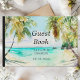 Cet élégant et beau livre d'hôtes dispose d'une plage aquarelle, d'un ciel bleu et de palmiers. Le texte combine écriture manuscrite et polices sans serif pour un look élégant et moderne. Il est parfait pour une plage d'été ou un mariage de destination tropicale.