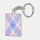 Une charmante décoration en plaid bleu, rose et jaune. Personnalisez avec une initiale.