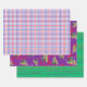 Pack of 3 papers, 19x29" each, in Plaid, Christmas Trees on Purple, and Green Dash designs.