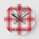 Plaid Red & White Custom Name Gift Runde Wanduhr