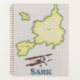 Carte vintage Sark ornée d'un bel ancien avion bi.