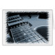 Plan rapproché en bas du cou d'une guitare électrique bleue. Cadeaux modernes de photographie pour des guitaristes et des musiciens. Cette photo de guitare est disponible sur l'habillement, les cadeaux, l'objet de collection et beaucoup plus.
