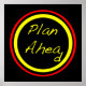 Manchmal funktioniert nichts so, wie wir glauben, es wird! Dieses Poster sagt uns, "planen voraus" in einem schwarzen Kreis, mit äußeren Ringen von gelb und rot und einem schwarzen Hintergrund.