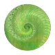Cette planche ronde présente une belle fractale en spirale monochromatique dans les tons verts.