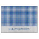 Cette jolie planche à découper en verre dispose d'une ferme rustique inspirée en vichy motif en plaid en bleu et blanc classique. Personnalisez la bande bleue et blanche correspondante avec votre choix de texte spécial.