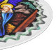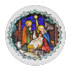 Un vitrail design photographique de la crèche avec Marie, Joseph et le bébé Jésus.