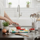 Ajoutez une touche de sophistication contemporaine à votre cuisine avec cette superbe planche à découper en verre géométrique. Avec une disposition minimaliste de cercles entrelacés et une palette raffinée de tons neutres et terreux - y compris la terre cuite, le sable et le charbon - cette pièce allie une touche artistique à une utilisation quotidienne.
