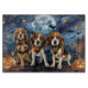 Libérez l'esprit éffrayant avec ce design d'Halloween étrange avec une meute de chiens sous un ciel sombre et clair de lune, entourée de chauves-souris volantes et de citrouilles brillants. Parfait pour ceux qui aiment une touche de plaisir effrayant avec leurs amis en fureur !