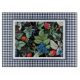 La table de coupe en verre élégante (qui peut doubler comme un plateau de charcuterie) présente l'aquarelle d'un mélange de baies sur la vigne, sur un arrière - plan foncé avec joli pique-nique de campagne en vichy à damiers arrière - plan