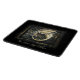 Un petit dragon crème debout sur un noeud celtique en pierre travaille. La pierre que le dragon est gravée d'art tribal.