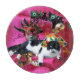 PLANCHE À DÉCOUPER CHAT AVEC CASQUETTE HARLEQUIN ET MASQUERADE DE FÊT