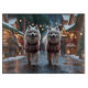 Cette conception festive capture l'esprit joyeux de la saison des fêtes, mettant en vedette des chiens adorables. Nichés dans un pays des merveilles hivernal, avec un arbre de Noël décoré et des cadeaux magnifiquement emballés. Les flocons de neige tombent doucement, ajoutant une touche magique à la scène, tandis que les couleurs vives des décorations de Noël créent une atmosphère chaleureuse et joyeuse.
