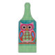 Pluricolorée, style art populaire mignonette pois patchwork owl se tenait sur une branche d'arbre fleurie avec un arrière - plan orné et des pois verts.