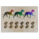 Trois silhouettes colorées italiennes Greyhound avec des empreintes de pattes contre un arrière - plan moderne bronzé.