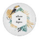 Planche à découper élégante avec un cadre tropical avec des feuilles et un oiseau toucan abstrait. Ceci peut être personnalisé avec les noms d'un couple. Les noms sont dans une police de caractères noire. Le fond est blanc. La couleur du cœur est modifiable en allant dans l'outil de conception, en sélectionnant le calque du cœur à gauche, puis en cliquant sur la boîte de couleur à droite pour afficher un nuancier.