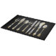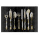 Une belle illustration en or de FAUX et l'argent de la cuisine vintage dénomment des couteaux, des fourchettes et des cuillères avec le lis d'arum, les roses et gravure à l'eau-forte floraux de remous de feuille sur eux. IDÉAL POUR - des restaurants, chefs, hôtels haut de gamme et formels, loges et stations de vacances de boutique qui offrent la cuisine exceptionnelle, la restauration et l'entretien argenté
