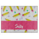 Ajoutez votre nom sur ce crayon jaune et gratte sur le design motif arrière - plan blanc.