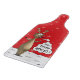 Un panneau de taille du verre en rouge avec l'image d'un renne et de lui de bande dessinée est excitation au sujet de la neige descendant.