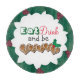 "Eat, drink and be merry" slogan with gingerbread heart shaped cookies and holly decoration on Christmas glass chopping board.