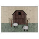 Cette Barn Sheep Glass Cutting Board présente l'art dessiné à la souris et est parfait pour votre cuisine Country.