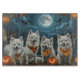 Libérez l'esprit éffrayant avec ce design d'Halloween étrange avec une meute de chiens sous un ciel sombre et clair de lune, entourée de chauves-souris volantes et de citrouilles brillants. Parfait pour ceux qui aiment une touche de plaisir effrayant avec leurs amis en fureur !