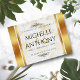 Célébrez le 3e anniversaire du mariage en cuir avec style avec cette planche de coupe en verre commémorative! Un élégant lettrage noir et des confettis hexagonaux dorés sur un luxueux arrière - plan en cuir blanc bordé de feuille d'or apportent une touche mémorable à cette occasion spéciale et à cette étape importante. Customisez avec les noms des couples, les dates du mariage et les messages de félicitations. Design © W.H. Sim. Voir plus sur zazzle.com/expressionsoccasions