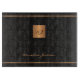 Elégante table de taille en cuir noir de luxe avec une parties scintillant en or monogrammed carré et signature de nom personnalisée.