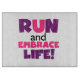 Si vous aimez courir, courir 5Ks, 10Ks, demi-marathons ou marathons, vous adorerez ce texte coloré en violet et rose qui lit Run and Embrace Life ! Cours et Embrassez des T-shirts, des tasses, des sacs, des cartes, des autocollants, des porte - clés, des mousepads, des coques iphone, des magnets et bien plus encore !