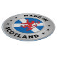 Un dessin qui comporte un faux anneau argenté, qui a été conçu pour ressembler à l'extérieur et l'intérieur ont été chanfreinés. Au centre de l'anneau, se trouve le drapeau écossais et le lion rouge rampant. Autour de la bague se trouve le texte "Made In Scotland" ainsi que 6 étoiles décoratives.