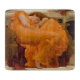 Ce dessin présente une peinture de l'artiste britannique Sir Frederic Leighton (1830-1896), célèbre pour ses oeuvres représentant des scènes historiques, bibliques et classiques dans un style académique. Ce tableau montre une femme d'une beauté stupéfiante portant une robe rouge diaphane alors qu'elle s'endort. Certains historiens de l'art ont dit que la branche de l'oléandre toxique en haut à droite pourrait symboliser le lien fragile entre le sommeil et la mort. Les couleurs riches et l'élégante recréation du marbre sont caractéristiques du style réaliste de Leighton, tout comme son utilisation de la lumière naturelle comme la vie. Ce tableau est considéré comme le magnum opus de Leighton et il a été achevé en 1895 ; il est actuellement hébergé dans le Museo de Arte de Ponce, Porto Rico.