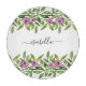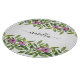 Fleurs violettes, verdure et typographie planche à découper. Il dispose d'une guirlande et il est personnalisé avec le nom dans une police de style calligraphie.