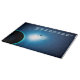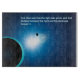 Image stylisée dans les tons bleus et blanc de la Terre et de la Lune rétroéclairée par le soleil. Une traduction anglaise de Genèse 1:4 qui disait "Dieu a vu que la lumière était bonne, et Dieu a divisé la lumière de l'obscurité" apparaît également en bleu et blanc éclatant.