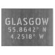 Glasgow Scotland latitude et longitude coordonnées de carte en caractères blancs urbains sur gris arrière - plan (les couleurs de police et d'arrière - plan peuvent facilement être changées si vous le souhaitez)