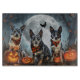 Libérez l'esprit éffrayant avec ce design d'Halloween étrange avec une meute de chiens sous un ciel sombre et clair de lune, entourée de chauves-souris volantes et de citrouilles brillants. Parfait pour ceux qui aiment une touche de plaisir effrayant avec leurs amis en fureur !