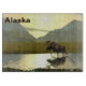 Un orignal traîne dans un étang par une journée ensoleillée d'automne dans la chaîne Brooks de l'Alaska. Le texte "Alaska" apparaît également.