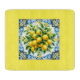This tempered glass cutting board is shown in lovely mediterranean lemons tile art print.