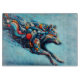Un loup de plusieurs couleurs saute sur la page (ou tasse, etc).
