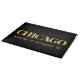La conception de la planche à découper en verre Lux comprend les coordonnées de la carte de latitude et longitude de la ville de Chicago en polices d'or sur arrière - plan noir