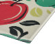 This tempered glass cutting board features a vibrant, repeating retro apple pattern. It adds a touch of MCM art to your meal prep while protecting your surfaces. A stylish, sanitary, and heat-resistant choice for the vintage-loving chef.