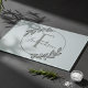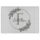 Elevate any kitchen space with this sophisticated and functional glass cutting board. The design features a minimalist olive branch wreath surrounding a bold monogram initial on a sleek glass surface. It serves as an impressive high-intent gift for realtors looking to celebrate a client's new home closing.