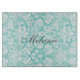 Motif floral vintage bleu de ciel élégant et joli de turquoise et blanc turquoise de damassé. Personnalisable avec votre propre nom ou monogramme, le cadeau personnalisé parfait pour n'importe qui qui aime faire cuire ou faire cuire au four.