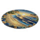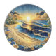 Set de table personnalisé. Représentation d'un coucher de soleil sur l'océan avec de jolies vagues bleues, une plage de sable, des palmiers et des fleurs faites dans un effet 3D étanche en papier.