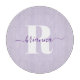 Design minimaliste classique monogrammed circulaire de planche à découper pour votre décor de cuisine. Customisez le style de police en gras selon vos besoins. Si vous changez la couleur violet royal de l'élégant script de signature avec des swashes, assurez-vous de vérifier que l'ombre portée est la couleur que vous voulez. Vous pouvez customiser la couleur arrière - plan violet pâle.