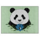 Portrait d'un mignon ours de Panda avec une fleur de lotus bleu dans un décor vert