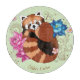 Un mignon panda rouge tenant la queue. Les fleurs de lotus et le henné dans un décor vert sont tout autour du panda rouge. Le tout dessiné dans un style tatouage.