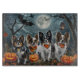 Libérez l'esprit éffrayant avec ce design d'Halloween étrange avec une meute de chiens sous un ciel sombre et clair de lune, entourée de chauves-souris volantes et de citrouilles brillants. Parfait pour ceux qui aiment une touche de plaisir effrayant avec leurs amis en fureur !