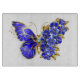 Bijoux, bleu, saphir, papillon aux fleurs pétillantes avec aile décorée de bleu, fleurs précieuses avec feuilles d'or sur arrière - plan blanc.