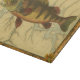 Cette impression illustre une image artistique d'un poisson perché jaune. L'arrière - plan affiche une carte géographique vintage dans les tons beiges clairs. Le cadre marron ressemble à un motif en bois ancien avec des fleurs jaune-rouge aux bords. Un grand ajout à votre collection de pêche !